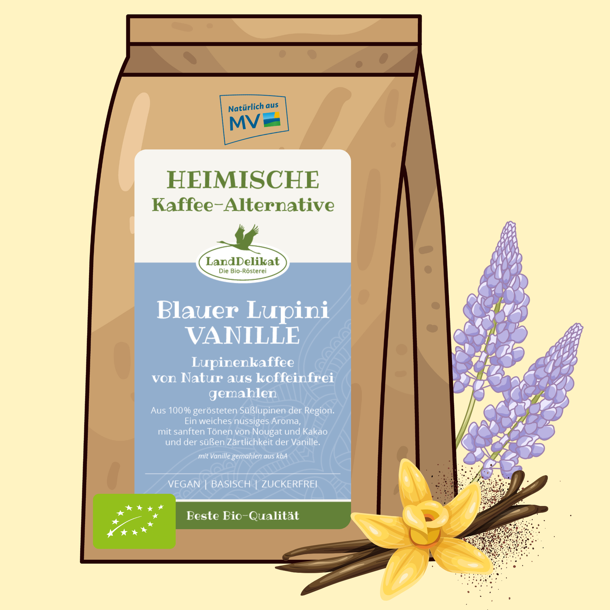 Ingredients: roasted lupins and vanilla from organic farming